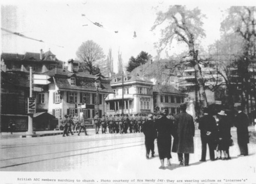This photo shows British ASC members marching to church. Photo courtesy of Mrs. Wendy Jay. They are wearing uniform as "internees".