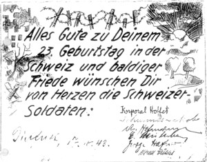He crossed the Swiss border on Armistice Day 1943, and told nobody what he did either in Italy or Switzerland. He stayed in the Swiss "camp" at Butschwil.