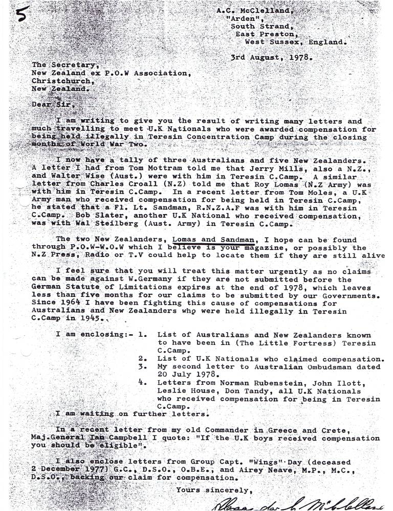 British claims, including those from Terezin, were settled in 1965. But when “The Small Fortress Association“ submitted similar claims for Anzac POW who had been immured at Terezin, both the Australian and New Zealand Governments continued to deny that any of their European POW had been sent to any Concentration Camps, while they maintained that a Concentration Camp at Terezin did not even exist, except in some POW minds.